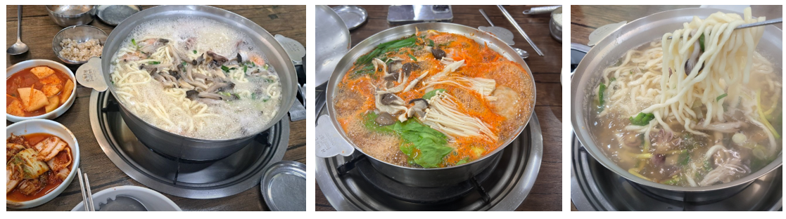 바지락, 주꾸미, 새우를 넣고 감자, 호박, 파로 국물을 낸 해물칼국수가 인기인 곳입니다. 하얀 벽의 단층 건물은 소박하면서도 깔끔한 인상을 주지요. 같은 해물칼국수라도 시원칼국수, 얼큰칼국수, 궁중칼국수로 메뉴를 세분화한 것이 특징입니다. 시원칼국수는 맵지 않아 아이를 동반한 가족들이 주문하기에 알맞습니다.직접 만든 만두로 만든 만두전골도 인기가 좋습니다.