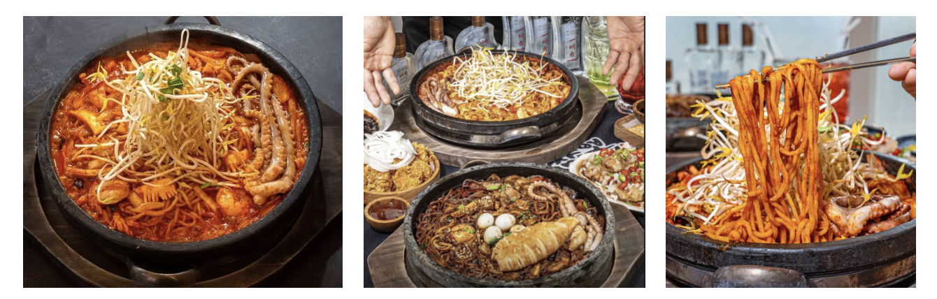 250도 각섬석 돌판위에서 지글지글 끓으면서 3번이나 맛이 달라집니다. 처음에는 닭육수에서 나오는 진한 국물 짬뽕 맛. 두번째는 숙주의 아삭함과 어울어진 볶음 짬뽕 맛. 세번재는 면까지 스며든 짬뽕과 야끼우동 그 사이 맛. 돌짜장은 전분 없는 짜장이라네요? 시간이 갈수록 담백하고 깊은 본연의 짜장의 맛. (짜장과 짜파게* 두가지 결합된 맛이라고 표현하셨습니다.) 저희 밀양돌짬뽕은 특별함을 추구합니다. 다름을 지향합니다. 조금 더 맛있는 짬뽕이 아닙니다. 그저그런 평범한 짜장이 아닙니다.